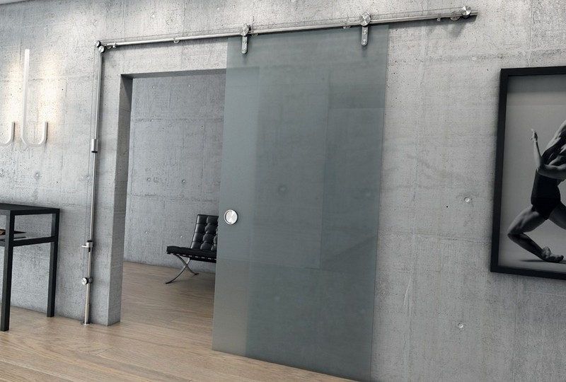 Стеклянная раздвижная дверь с матированным стеклом