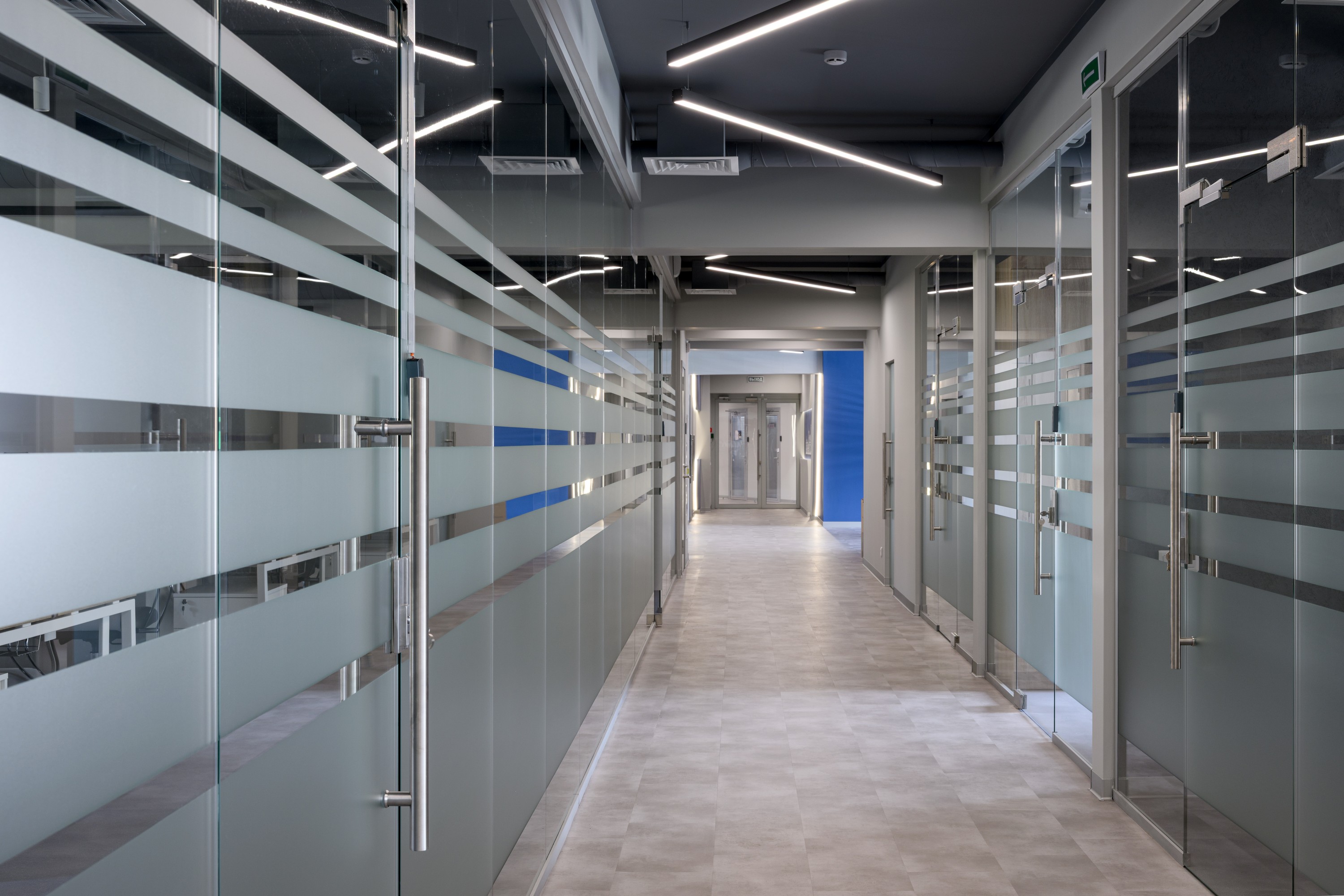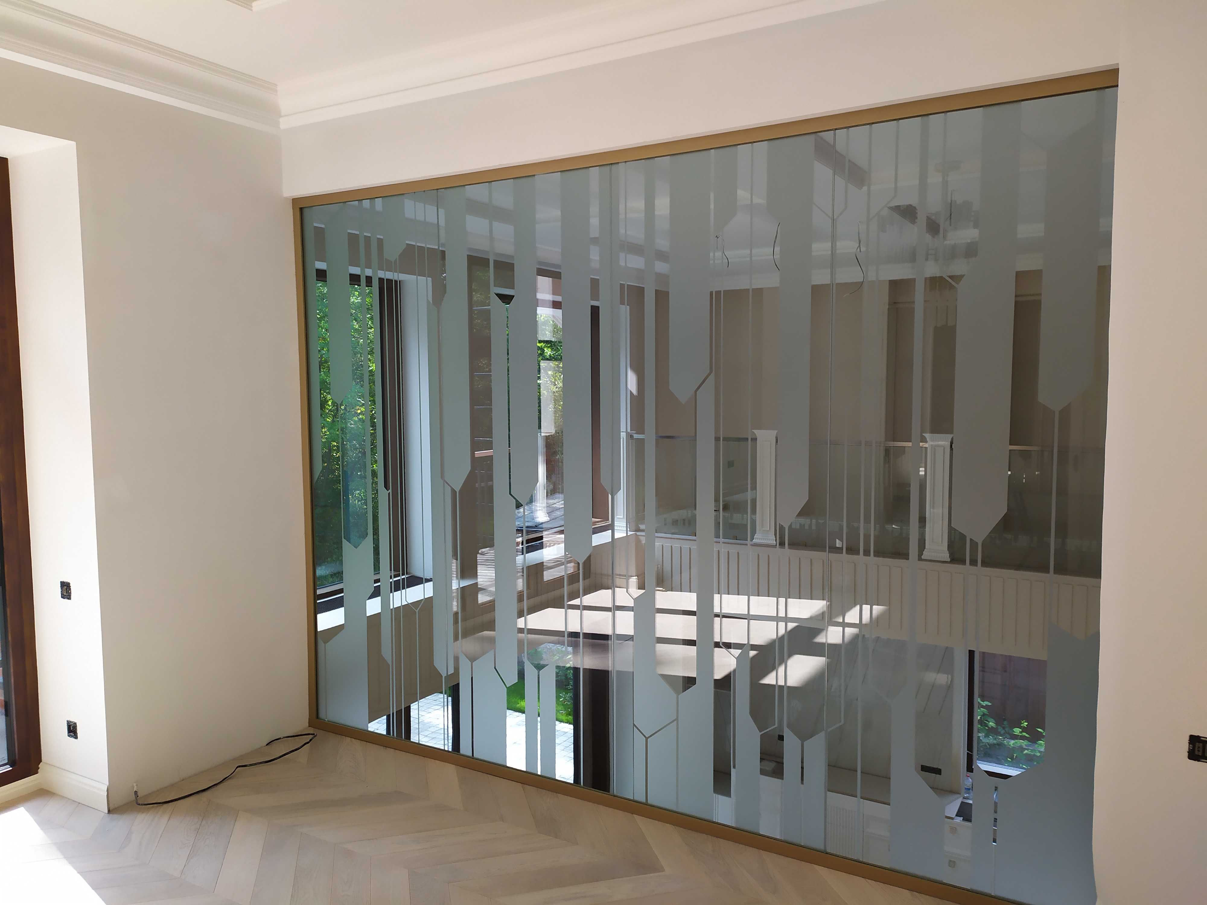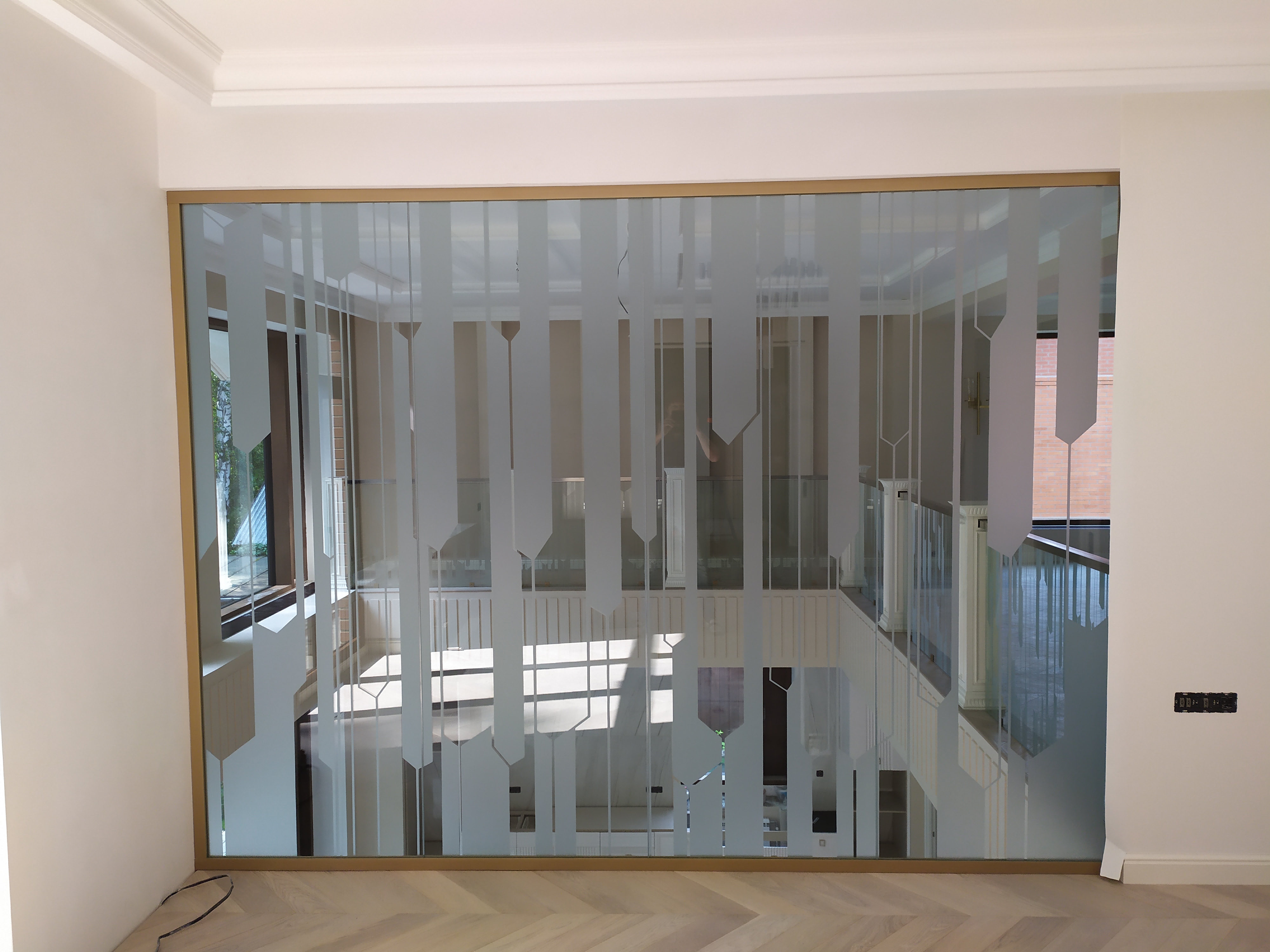 Стеклянные перегородки с матированными полосами